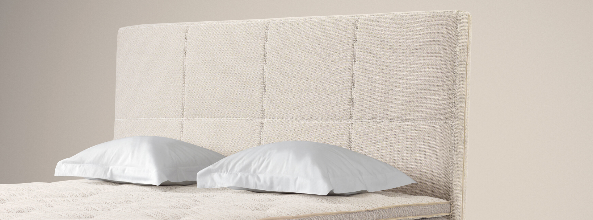 DUX Quadro headboard with matching stitching. DUX offers a range of headboards to complement your DUX bed. Our headboards are available in many styles with various upholstery options.