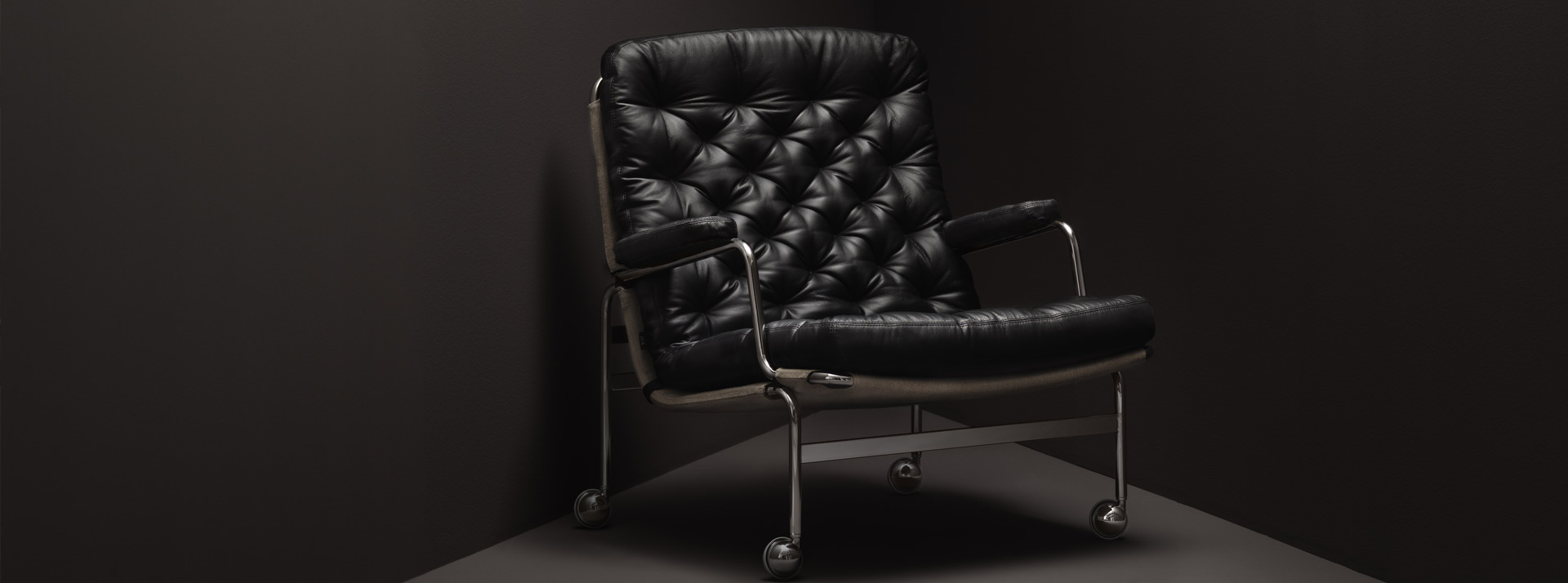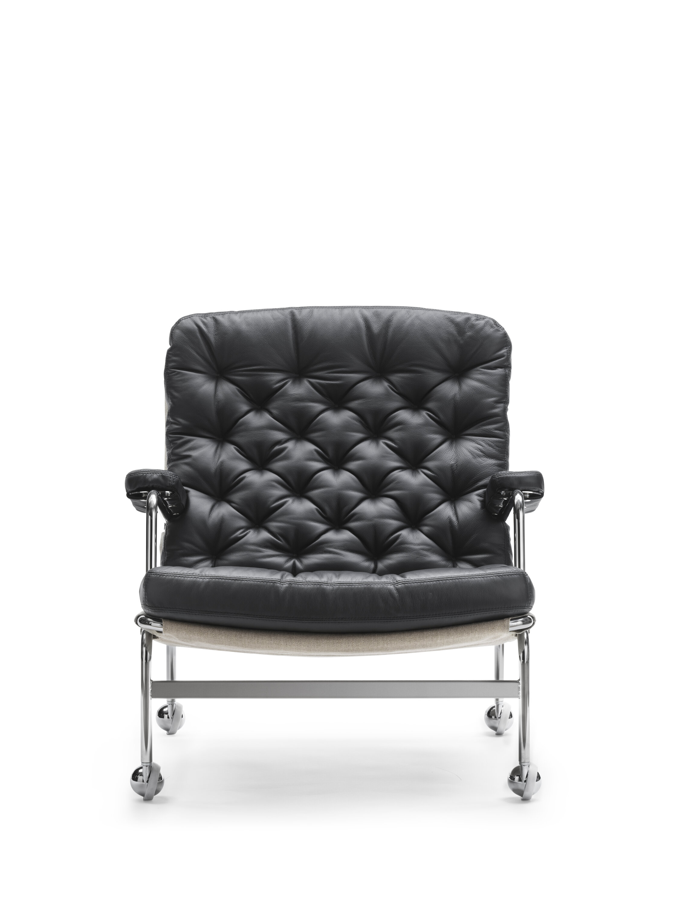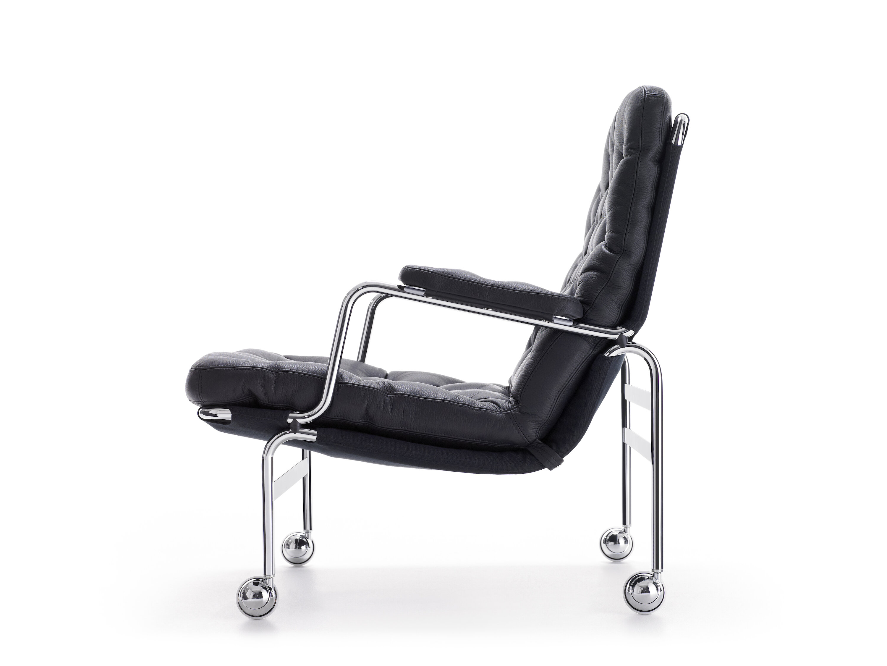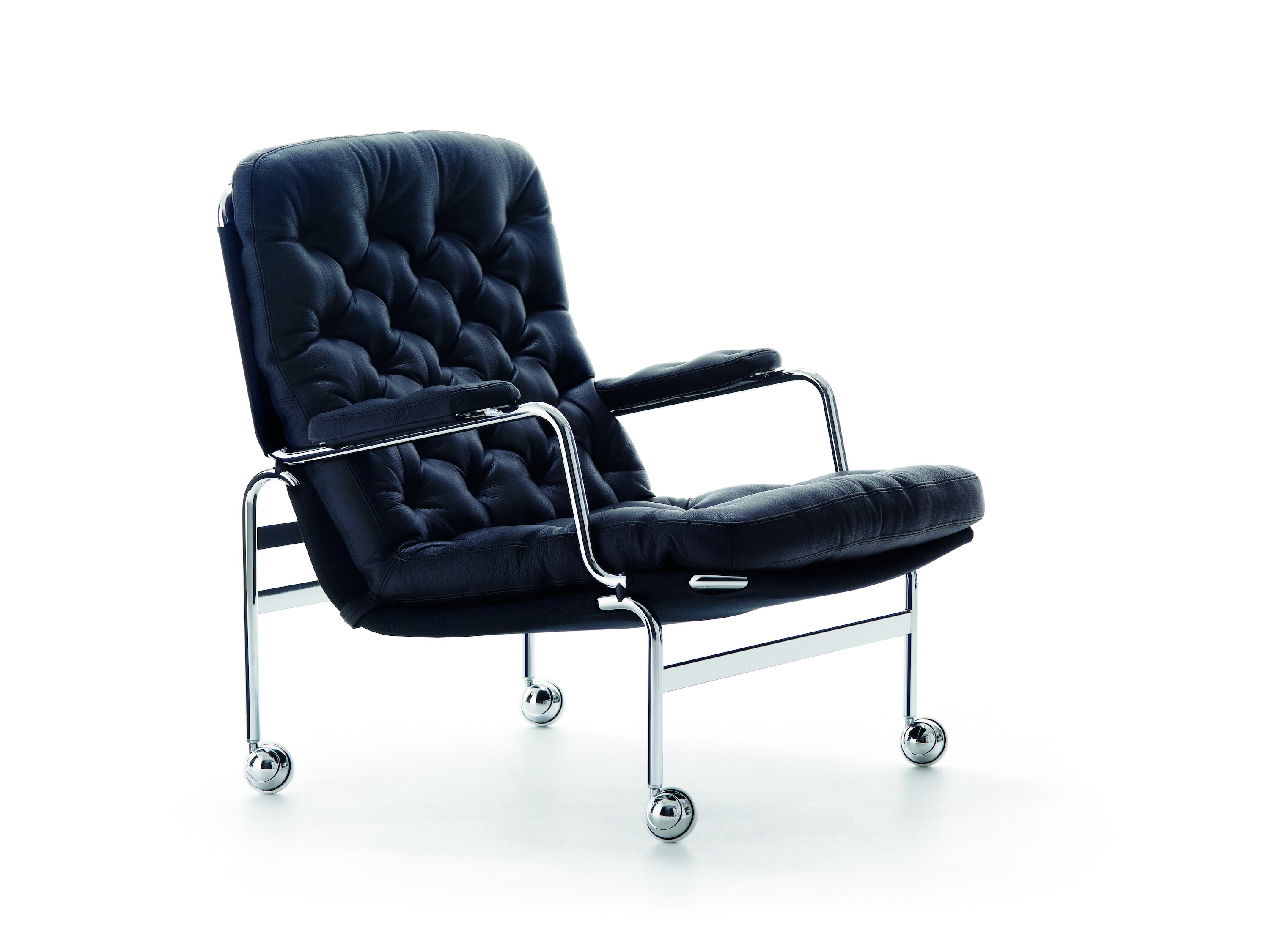 Classic elegant easy chair designed by Bruno Mathsson. Karin 73 is neat with a frame in fine chrome and a deep stitched cushion.