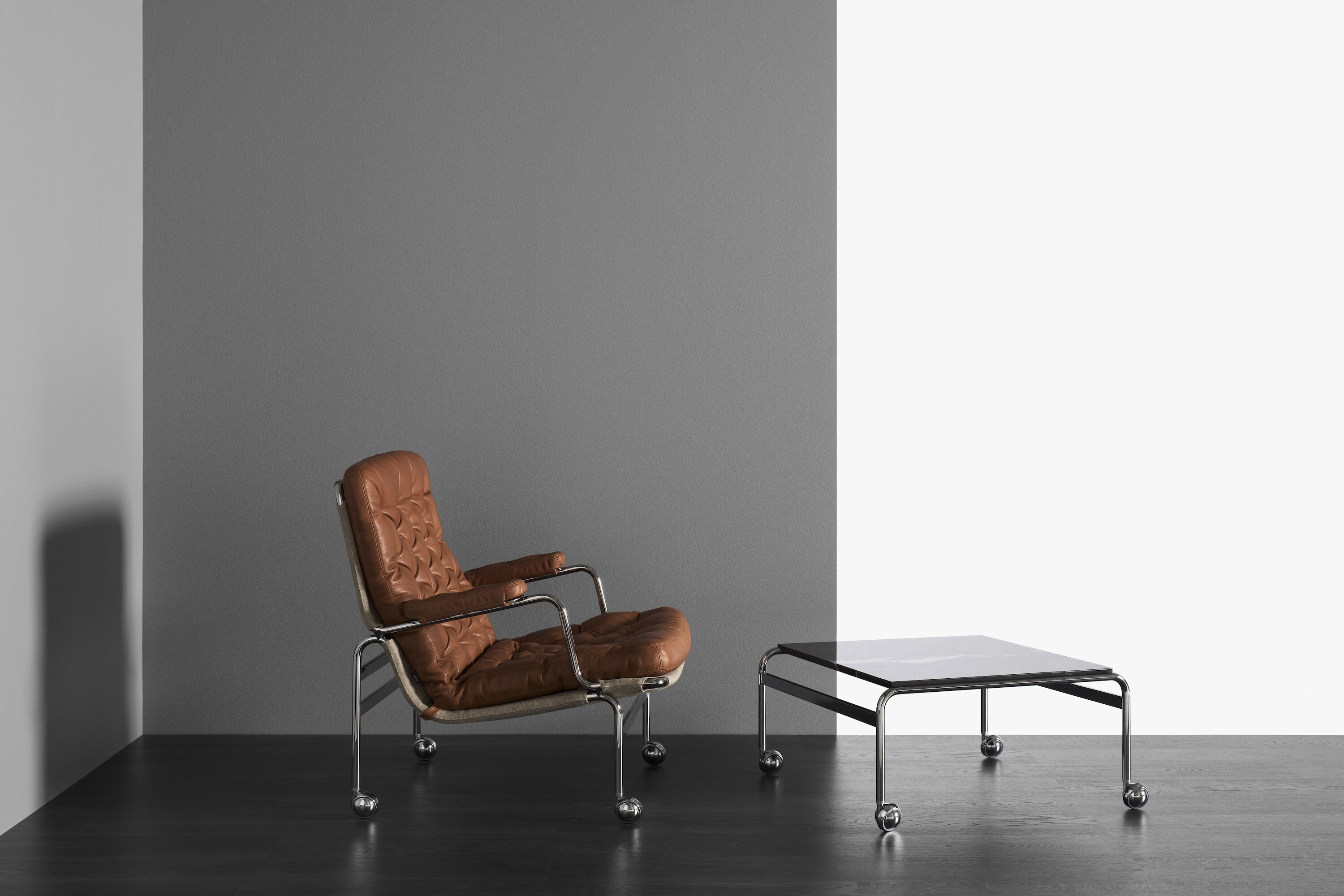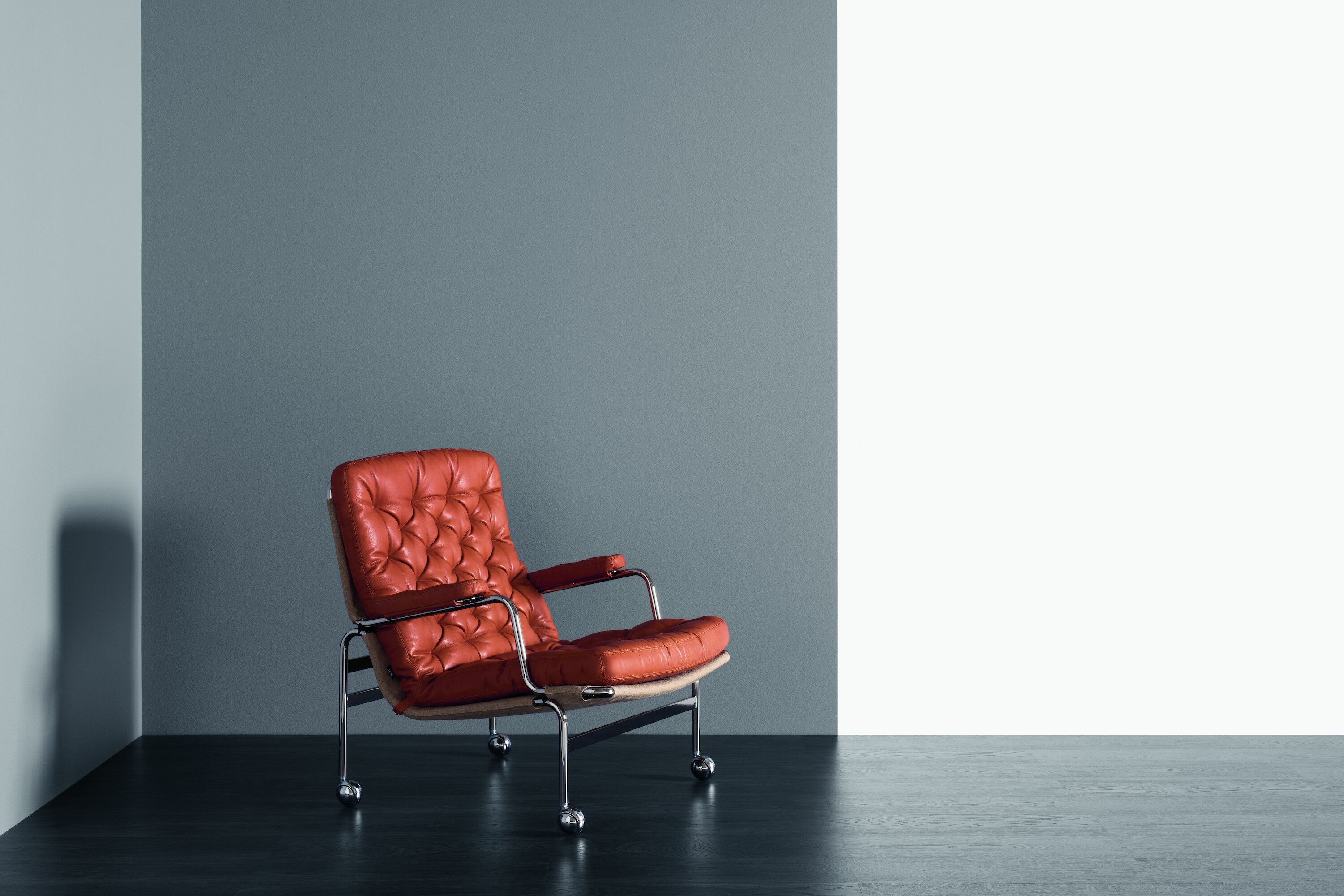 Four years after the first Karin armchair was launched a new model was created, named Karin 73. After having been out of production for over 20 years, Karin 73 was successfully relaunched as part of the DUX Design Revival 2012. Unlike the ordinary Karin armchair, which has buttons in the back and seat, Karin 73 has a deep-tufted cushion.