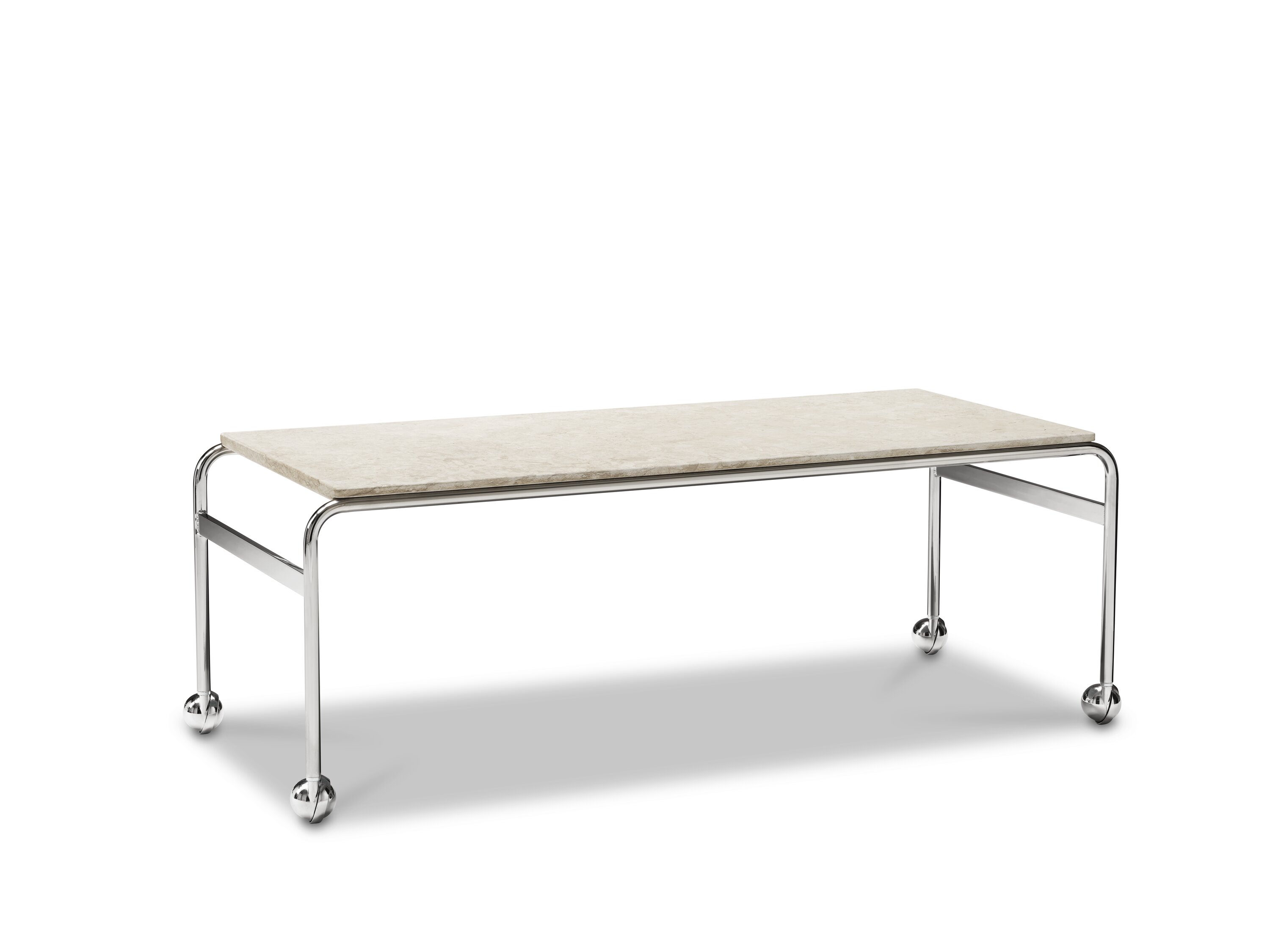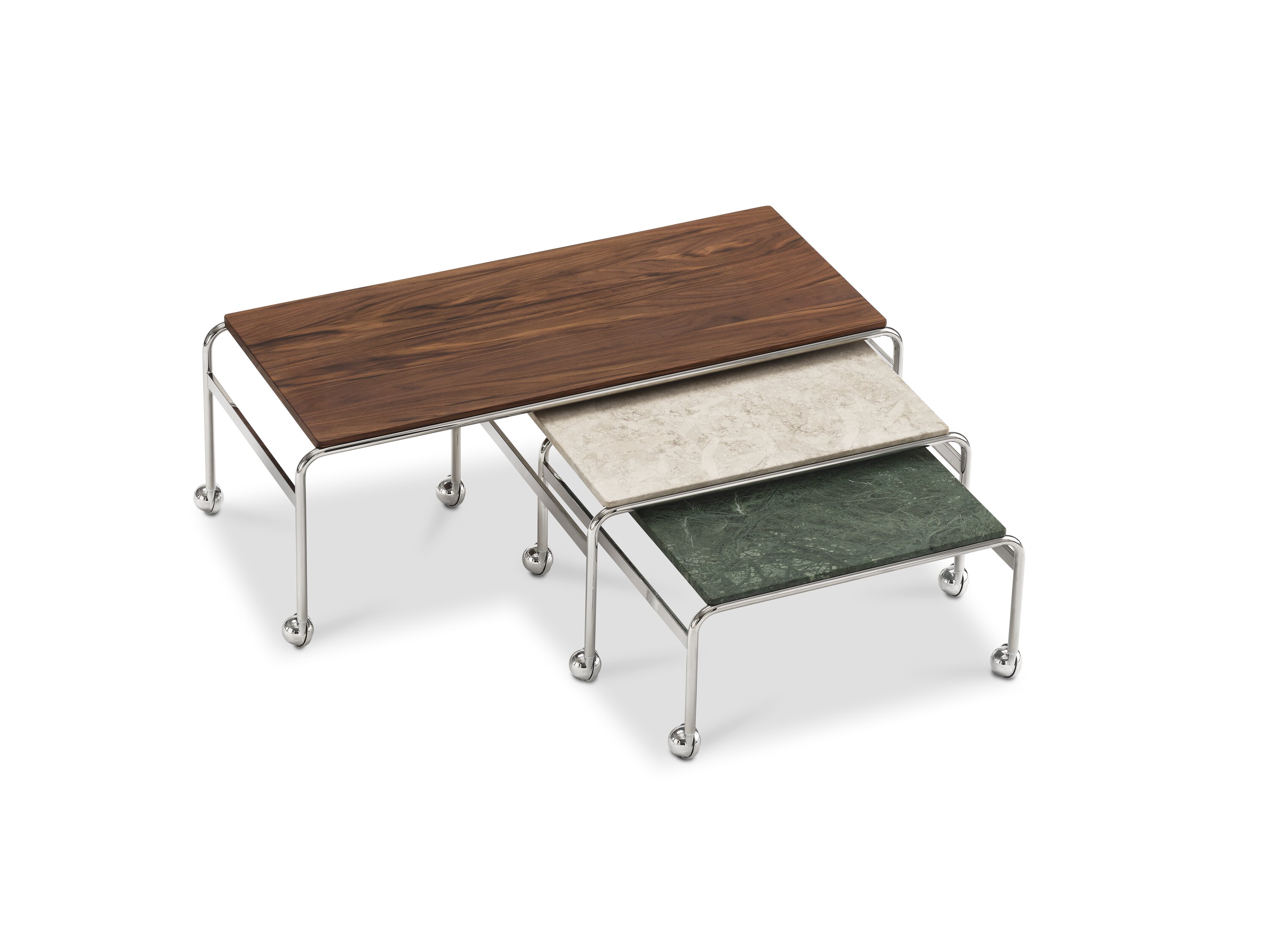 Based on Bruno Mathsson’s original table, designed to accompany his classic chair, this option provides the largest amount of surface space, but with the same elegant aesthetics of the Karin collection. The chrome-plated frame is topped in exclusive marble or walnut.