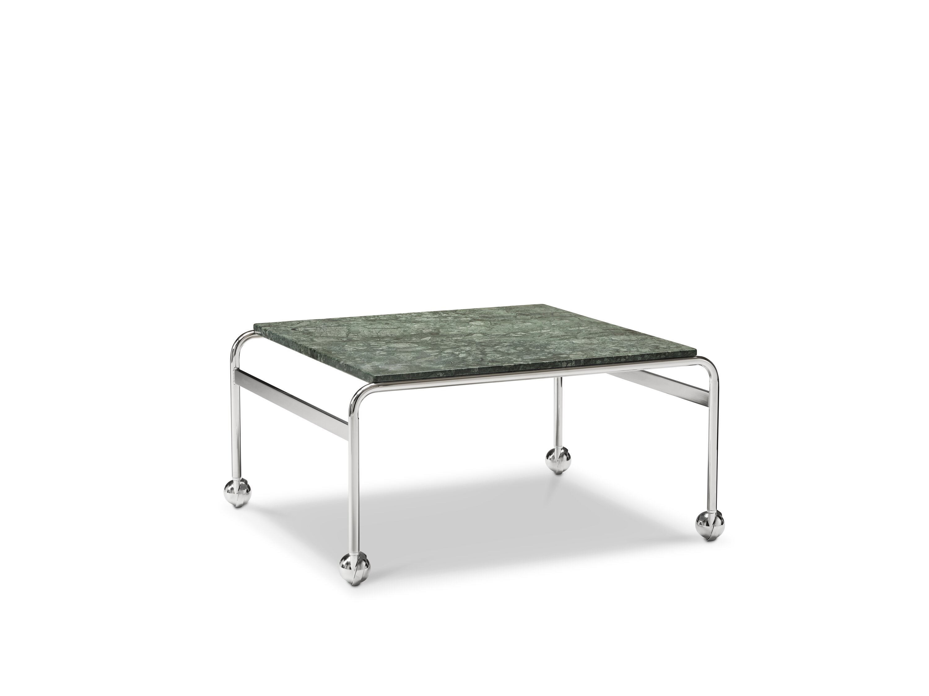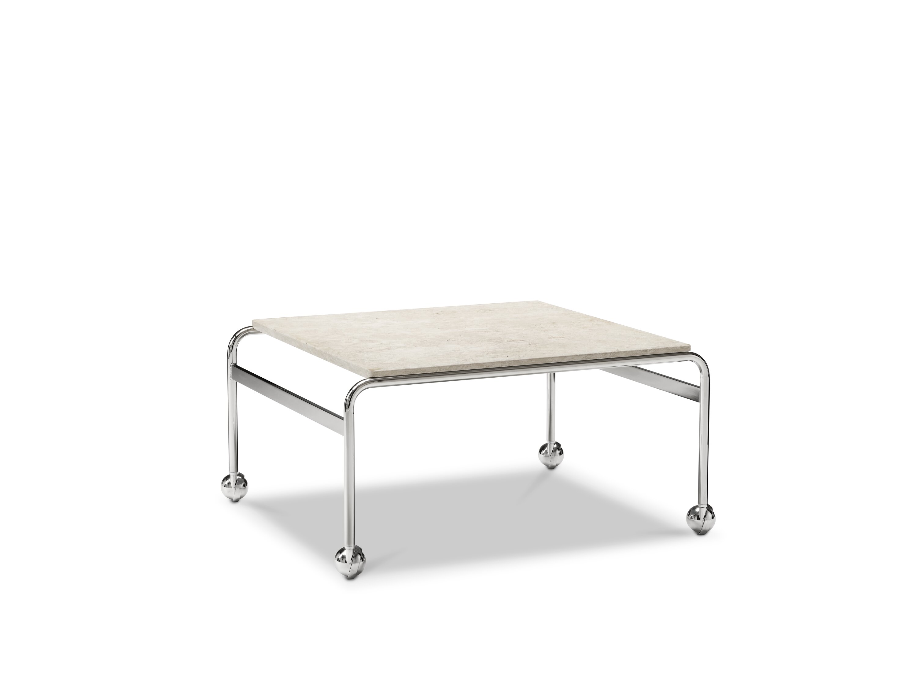 Based on Bruno Mathsson’s original table, designed to accompany his classic chair, this slightly larger option provides more surface space with the same elegant aesthetics of the Karin collection. The chrome-plated frame is topped in exclusive marble or walnut.